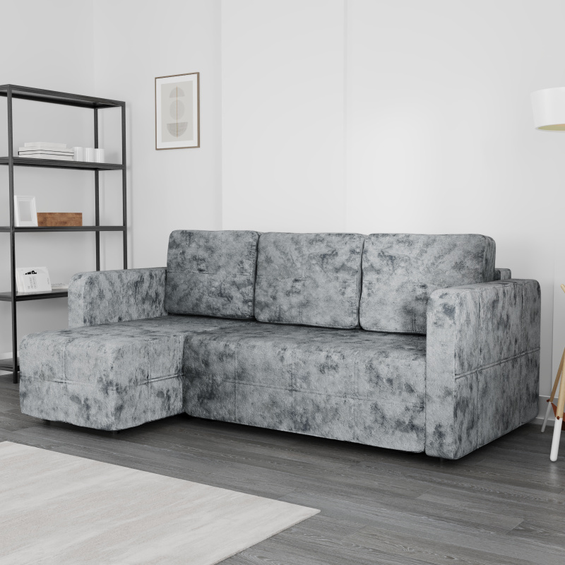 - Удобен для угловых моделей; нужна свободная зона перед диваном.