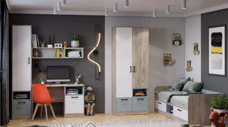 Оливер Шкаф для одежды (Дуб Крафт серый/Белый/Серо-голубой Оливер Шкаф для одежды (Дуб Крафт серый/Белый/Серо-голубой Оливер Шкаф для одежды (Дуб Крафт серый/Белый/Серо-голубой