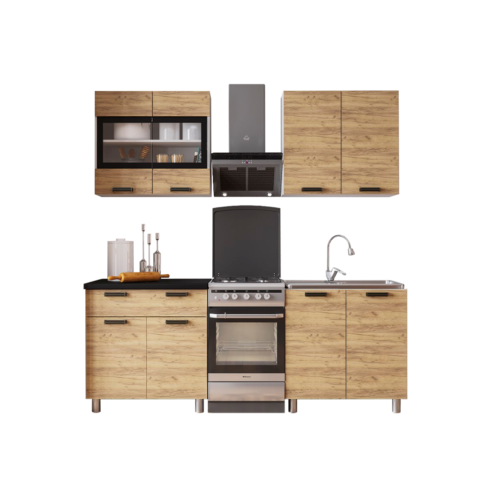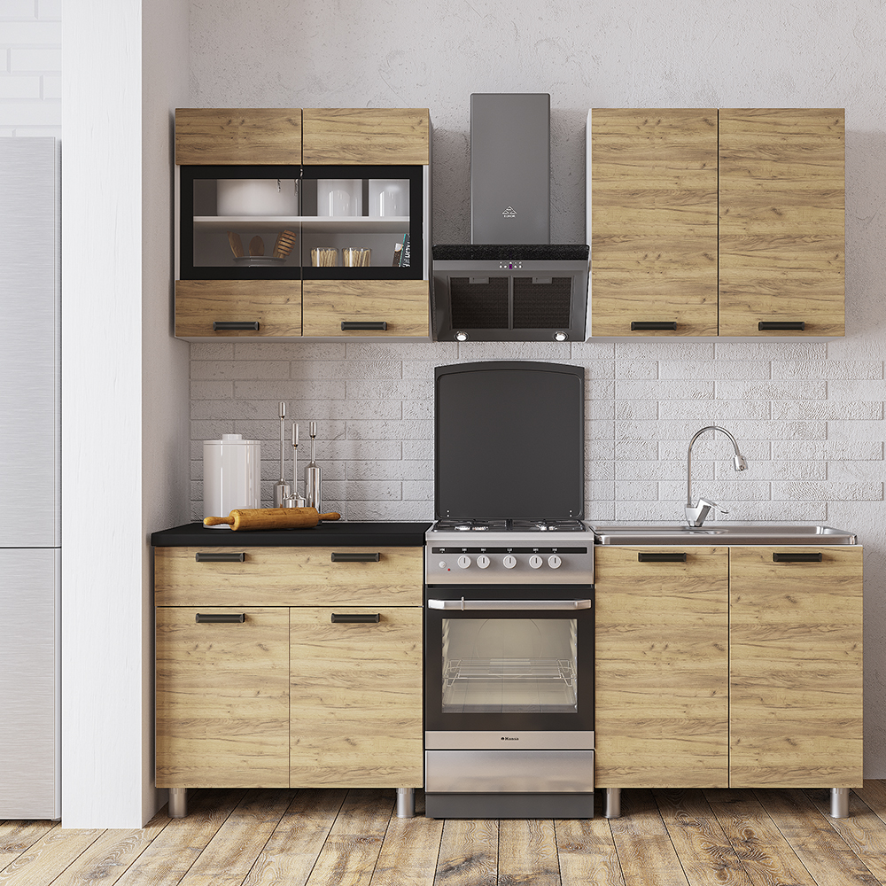 Кухня "Крафт" 1,6 м Крафт/Черный янтарь