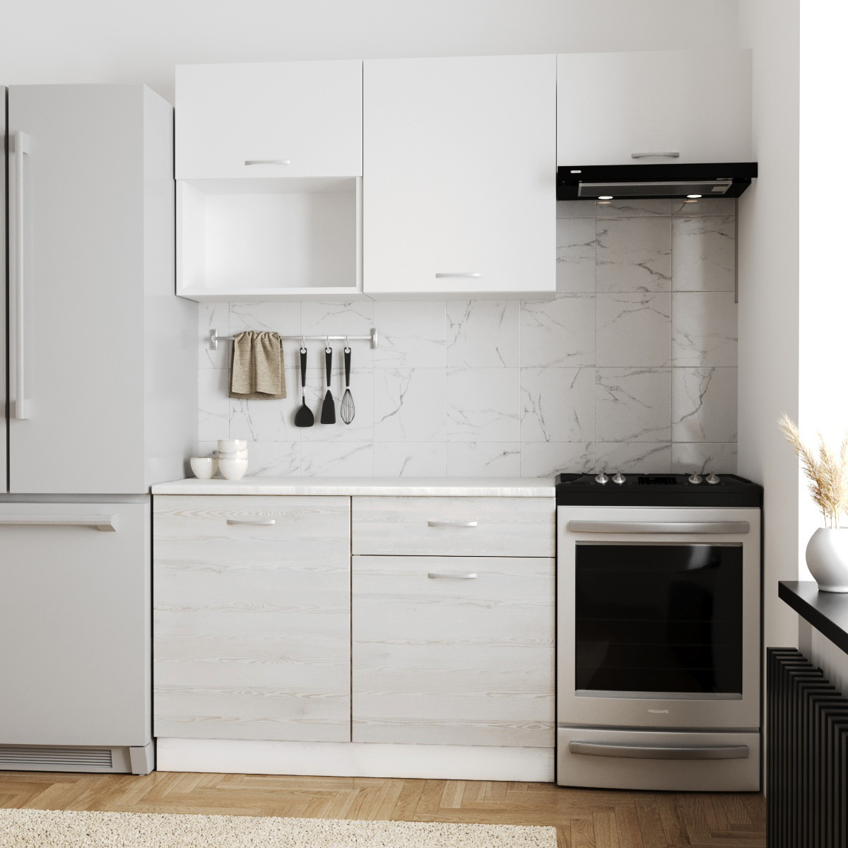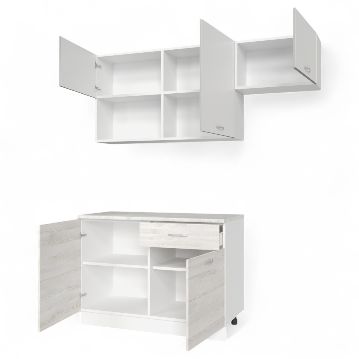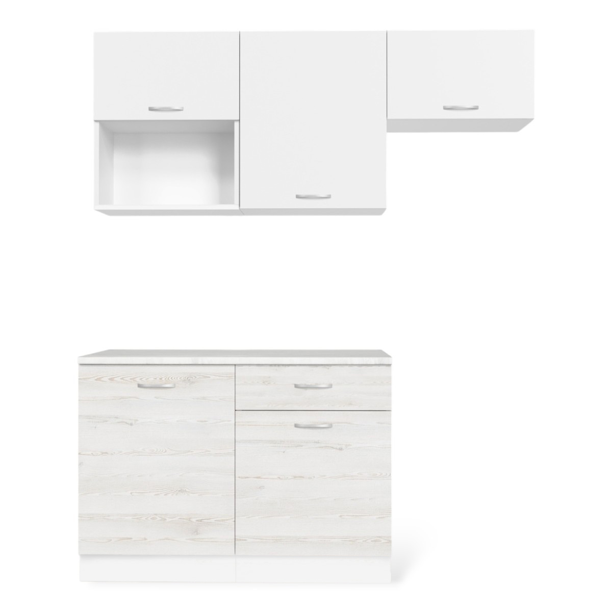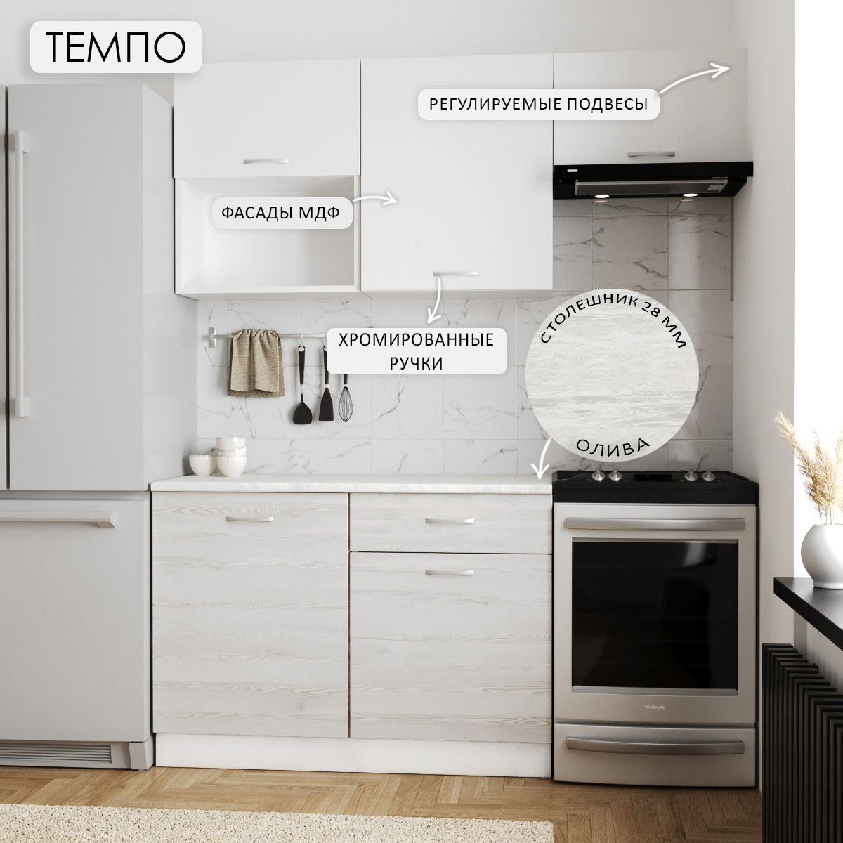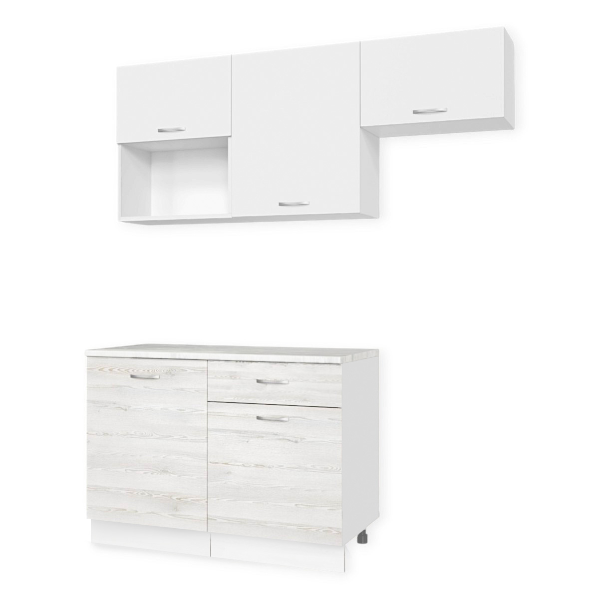 —Кухня ТЕМПО №3 Белый/Сосна Лофт/Белый жемчуг/Олива (без мойки) 1,2 м