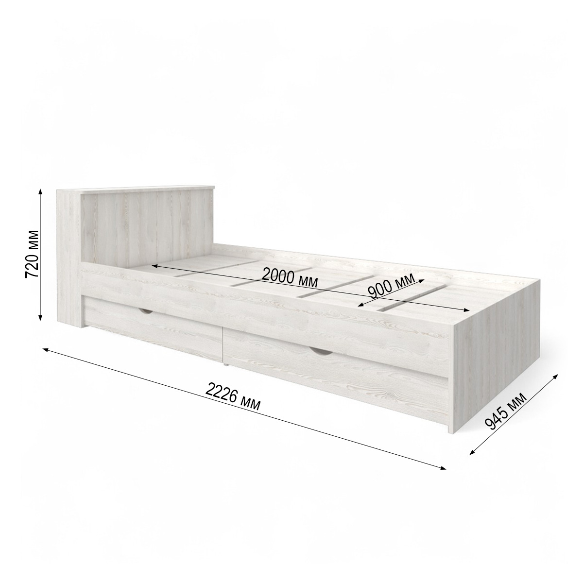—Кровать "АНЖЕ" (90*200)/Сосна лофт/