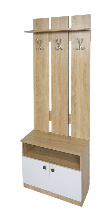 Стильная вешалка «БН - 201» в цвете «Дуб Сонома» с элементами «Белый Глянец» – универсальное решение для прихожей любого размера.
