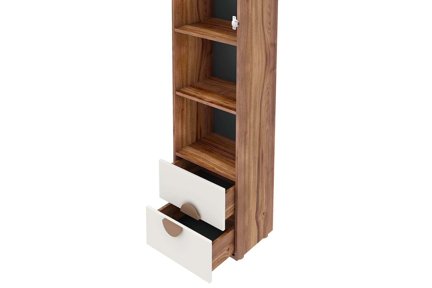 Однодверный шкаф с двумя ящиками из модульной коллекции  «Тризиль» (448×346×2051 мм) — это идеальное сочетание элегантного дизайна и функциональности. Благодаря компактным размерам он легко впишется даже в небольшие помещения. Фасады из ЛДСП и МДФ отличаются прочностью и устойчивостью к износу, а сочное сочетание оттенков «Зеленый камень» и «Белый» придаст интерьеру современный и свежий вид.